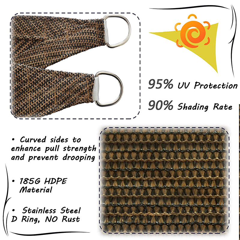 Matériau en polyéthylène à haute densité: L'avance est composé de matériau de polyéthylène haute densité 185g (HDPE), qui a une durabilité et une résistance aux UV. Ce matériau peut bloquer efficacement 95% des rayons ultraviolets, vous protégeant des dommages aux UV. Dans le même temps, l'avant a également un taux d'ombrage de 90%, vous offrant un environnement extérieur cool et confortable.
